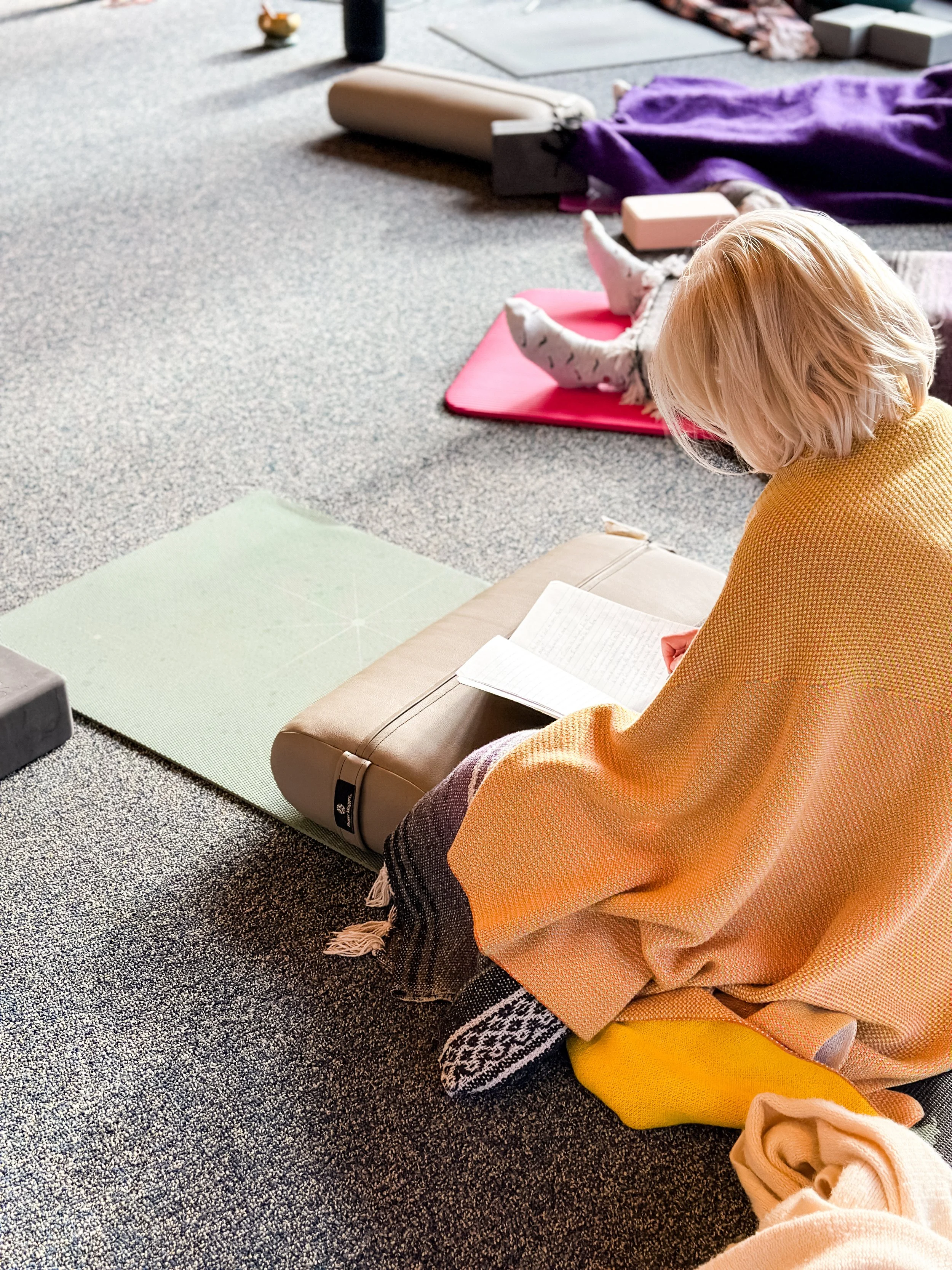 As participants arrived to the day we had been planning and praying for, introductions over snacks, coffee and tea emerged as people hung up their coats, took off their boots, unrolled their mats behind a set of props already lovingly placed for them, and settled in. A chilly morning meant people were wrapped up in cozy layers and blankets, and the first movement practice of the day that grew our heat from within was welcomed.